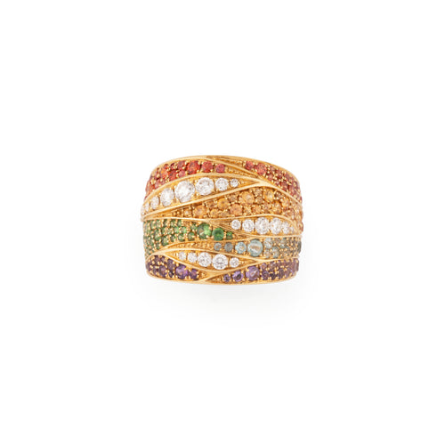 Bague en or jaune ornée d'un cabochon d'opale et saphirs multicolores