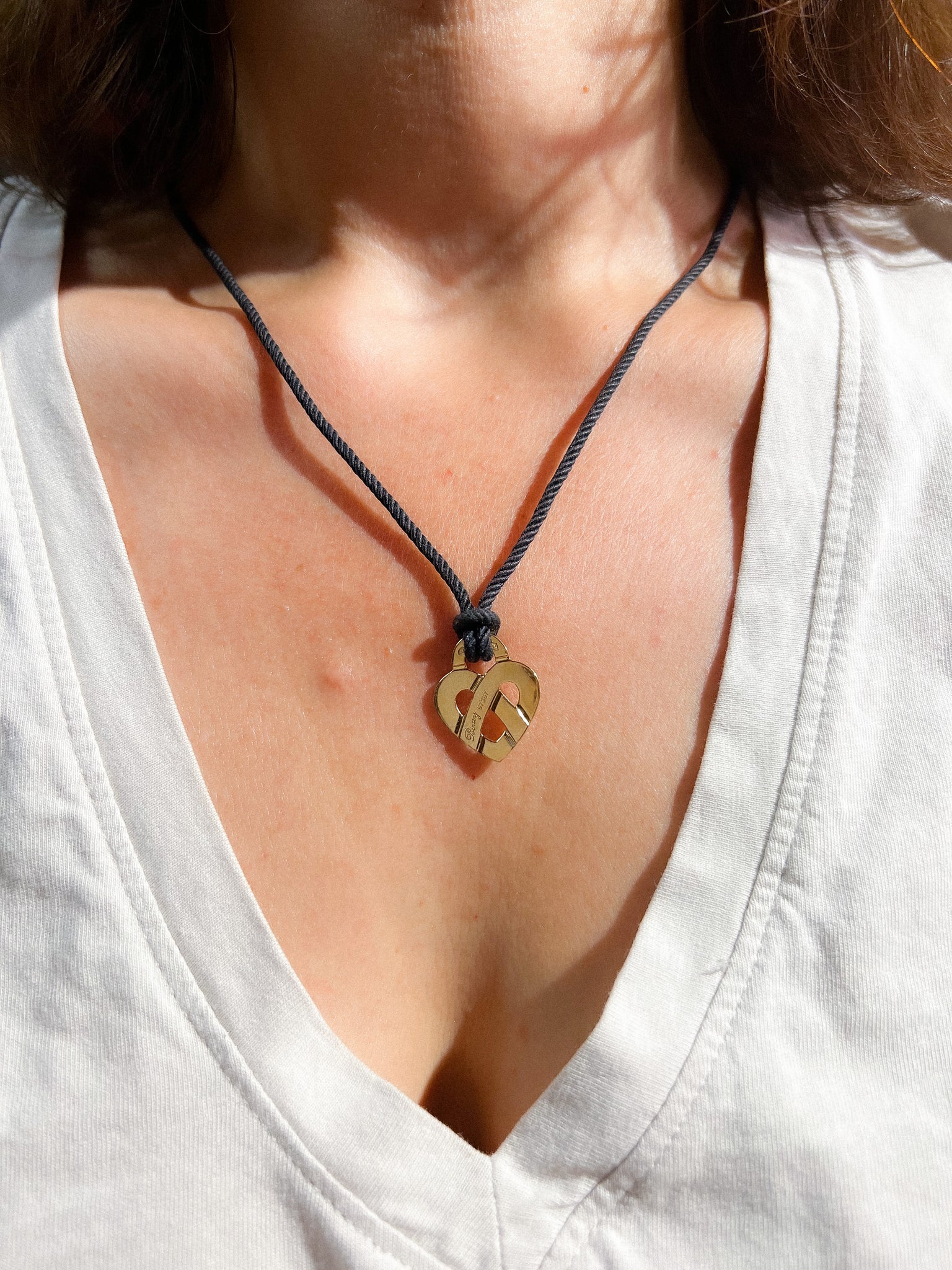 Pendentif en or jaune formant un cœur de la maison Poiray modèle cœur entrelacé, fournie avec 2 cordons.