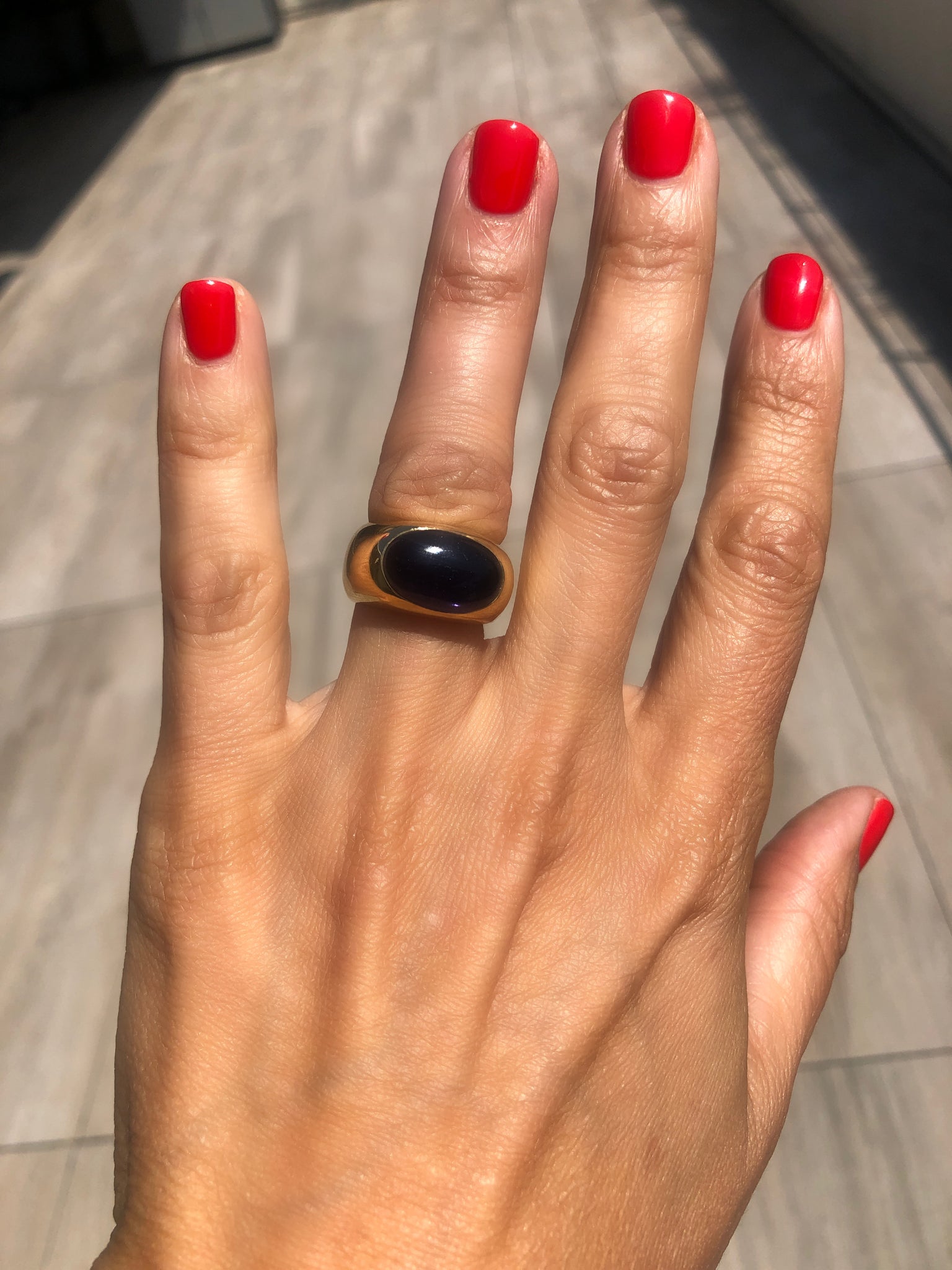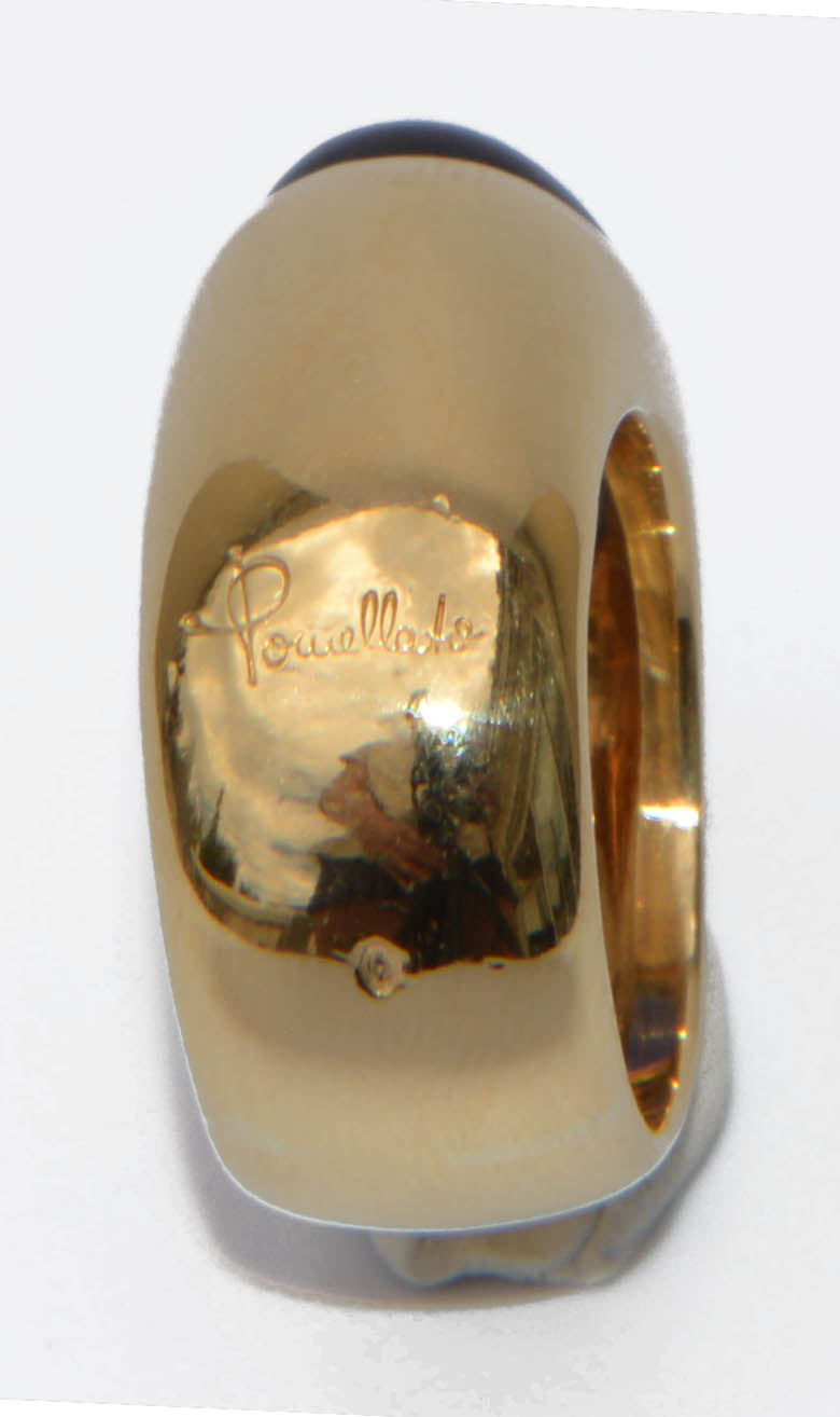 Bague jonc signée de la maison Pomellato modèle Goccia en or jaune orné d'un cabochon de cordiérite.