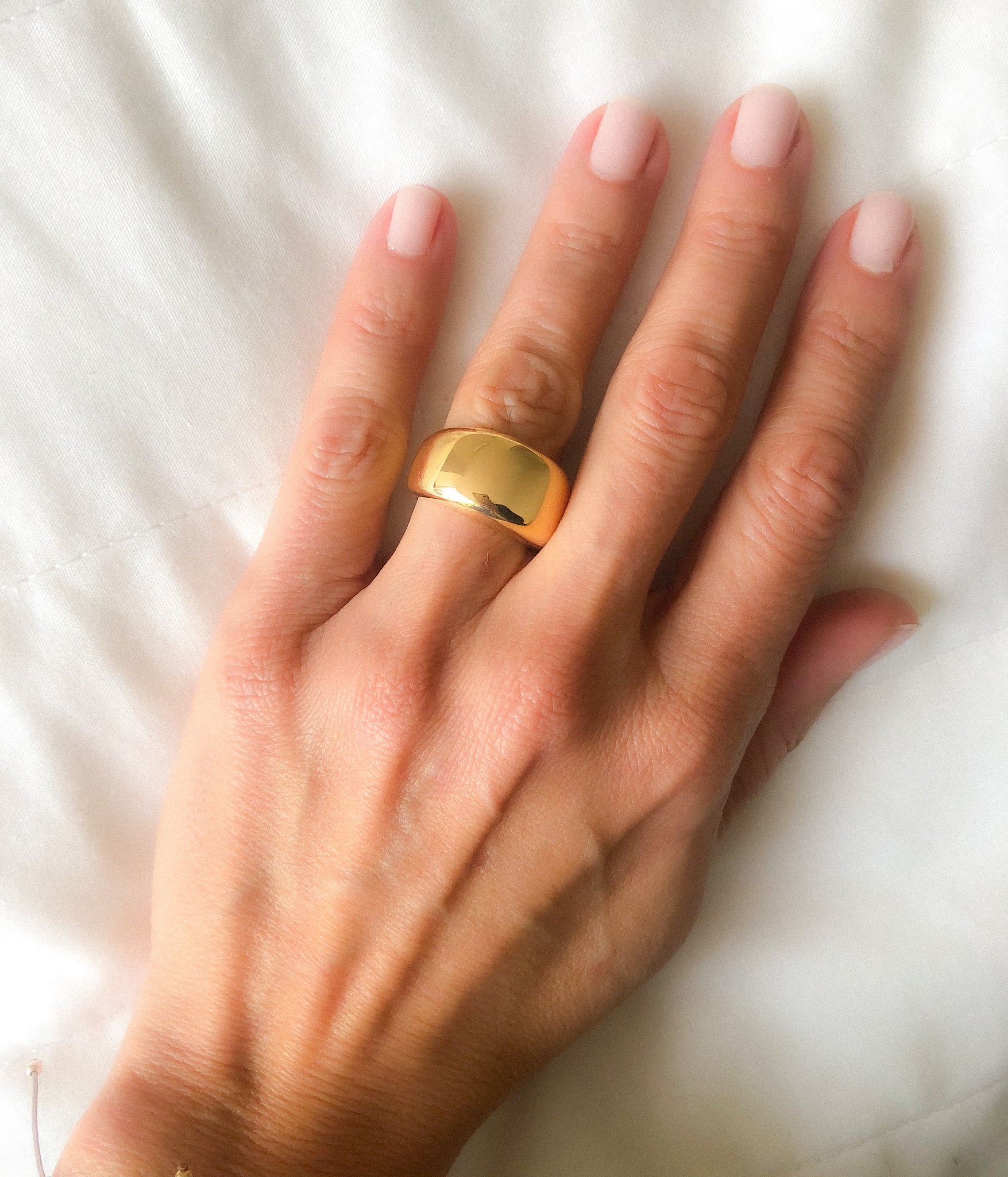 Bague de la maison  Cartier modèle Nouvelle Vague en or jaune , composée d'un large jonc bombé.