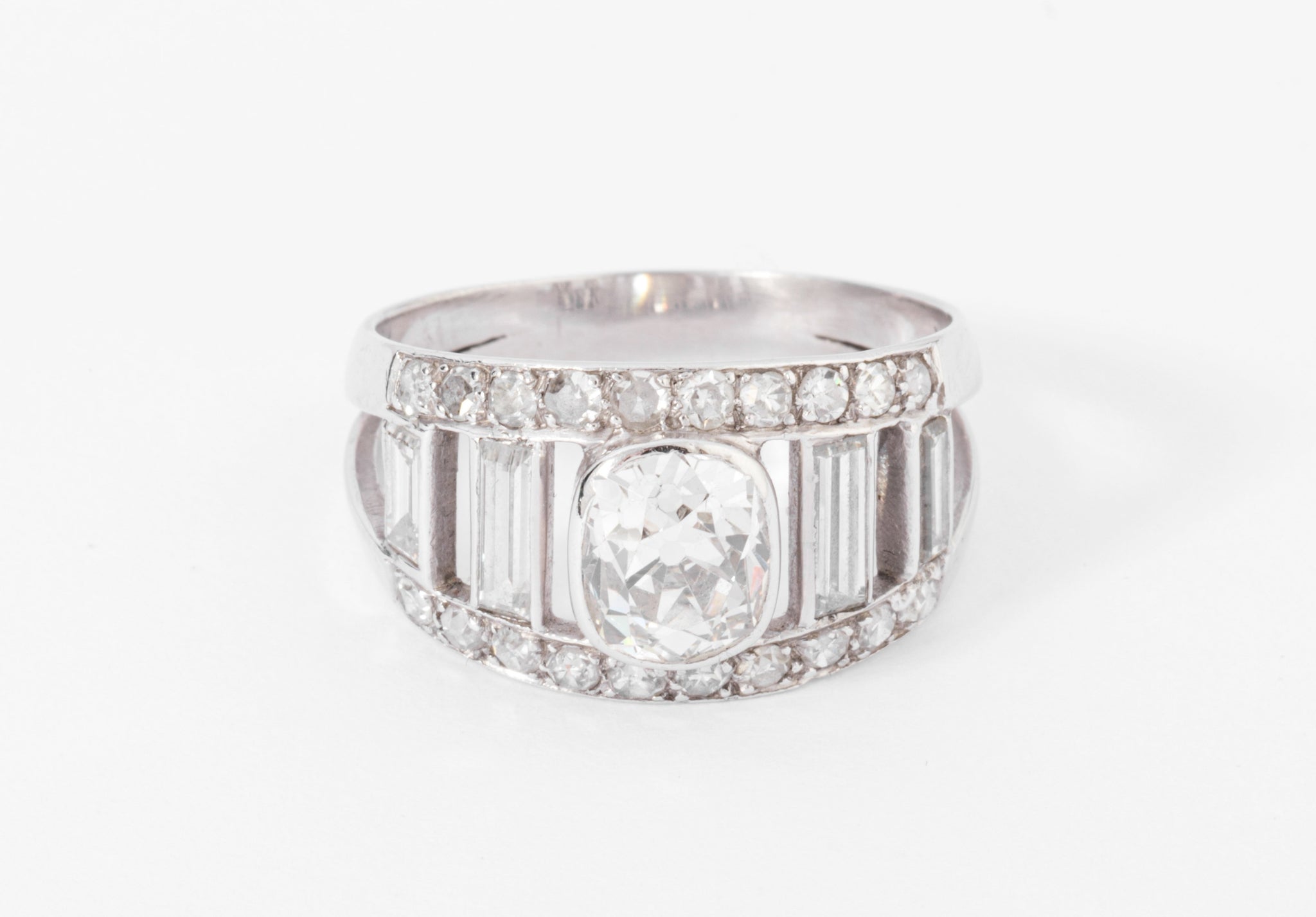 Bague en diamant et platine forme bandeau - adalgyseboutique