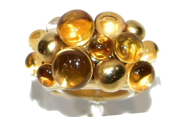 Bague de la Maison Pomellato collection Moa en or jaune, composée de boules en citrines rehaussée de perles en or jaune.