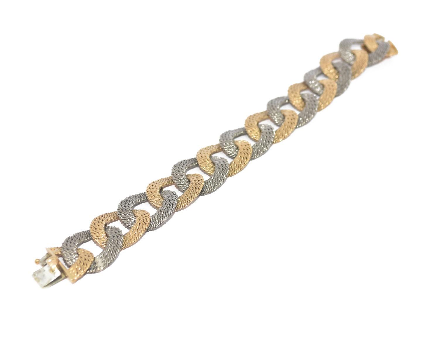 Bracelet bi-colore formant des maillons plats paillettes compressées de Georges Lenfant.