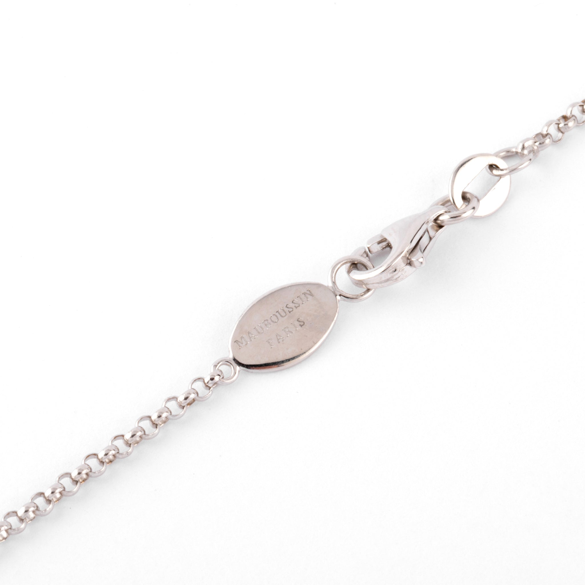 Collier or gris et diamant de la maison Mauboussin orné de 4 motifs pavés de diamants trèfle, croissant de Lune, cœur et étoile.
